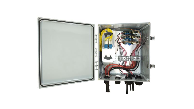 Amphenol的混合(電源和光纖)分界箱為室內(nèi)或室外設(shè)備安裝提供了出色的保護(hù)。密封的聚合物外殼可提供長壽命的耐候性位置,以標(biāo)記,組合或隔離光信號光纖和銅纜電源,以連接到各種通信設(shè)備,包括回程,宏和小型蜂窩無線應(yīng)用。入口和出口可以配置為包括銅質(zhì)電力電纜或光纖電纜。